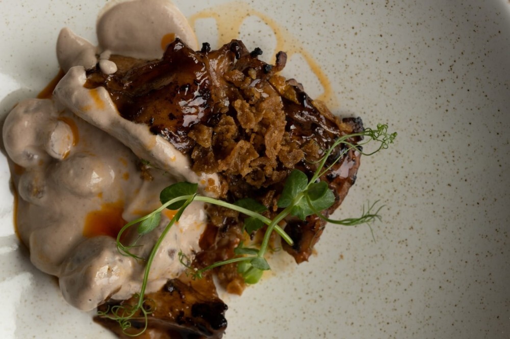 Утиная грудка с картофельным пюре и клюквенным соусом