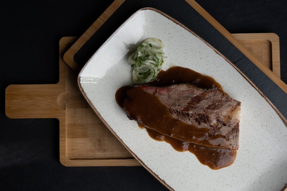 Утиная грудка с картофельным пюре и клюквенным соусом